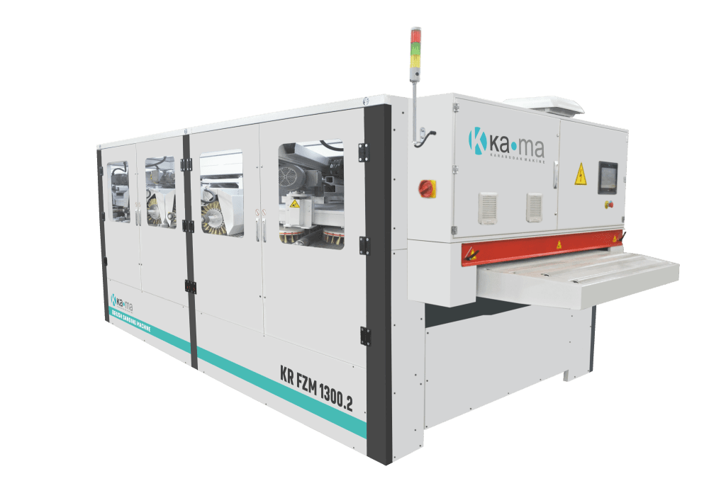 Another technologically advanced example of automatic wood sanding machines is the KR FZM 1300.1.1 produced by Kama Makina. Developed as a solution to the need for three-dimensional raw and primer sanding in the processing of rustic and CNC carved surfaces, KR FZM 1300.1.1 wood sanding machine is used in every area where homogeneous surface sanding is required with its brush unit that operates vertically on the horizontal axis. In the model, which has the cross brush unit and a vacuum table as a regular part and order-specific expansion are offered as options.